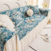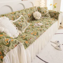 Use our battle tested marketing materials for Pastoral Cotton & Linen Sofa Blanket with Floral Skirt – Anti-Slip Sofa Cover