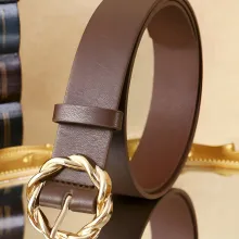 Use our battle tested marketing materials for Women's Coffee-Colored PU Belt with Gold Braided Buckle – Chic Everyday Accessory