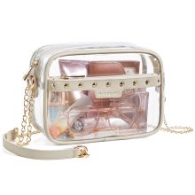 fashion and function. The rivet accents add a bold touch, while the transparent PVC ensures compliance with event regulations. Its soft, flexible build and casual shape make it comfortable for all-day wear, and the unisex design means anyone can carry it with confidence. With no bulky lining or compartments to weigh you down, it’s simplicity perfected.