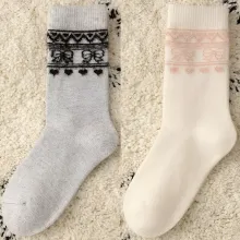 Women's Cozy Wool Socks – 2 Pairs Vintage Floral Warm Knit Socks
