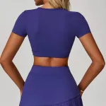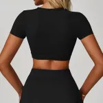 Power through your workouts with the Women's Quick-Dry Yoga & Running T-Shirt — the perfect balance of comfort, performance, and style. Designed for active women who demand both function and flair, this form-fitting tee hugs your body with a flattering silhouette while keeping you cool and dry no matter how intense your routine gets. Crafted from a premium nylon and spandex blend, this athletic top delivers remarkable stretch, allowing you to move freely during yoga, running, cycling, or gym training. The breathable knit fabric and quick-dry technology wick away sweat instantly, keeping you fresh from warm-up to cooldown. Featuring a hollow-out design on the back, it adds a stylish touch while enhancing ventilation for superior comfort.Product Features