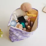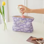 With its large-capacity design, this bag easily holds all your favorite beauty essentials, toiletries, and accessories. The wide opening and smooth zipper closure make packing and retrieving your items quick and hassle-free. Its pillow-shaped body gives it a soft yet structured feel, allowing it to fit comfortably in your luggage, backpack, or tote without losing shape. Measuring approximately 9–10 inches wide, it offers ample space for makeup brushes, skincare bottles, perfumes, and more.Features That Make It Stand Out