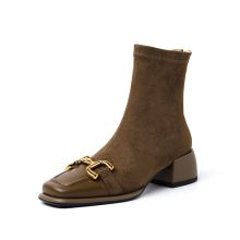 Use our battle tested marketing materials for Women's Retro Leather Ankle Boots with Mid Heels and Metal Detail