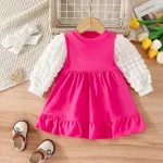 Featuring a classic round neckline and lantern-style long sleeves, this dress offers a blend of casual elegance and playful cuteness. The A-line silhouette and ruched detailing give it a gentle, flowy look that flatters your little one’s shape while keeping her comfortable all day long. Its color-block pattern adds a trendy touch that makes it stand out in any baby wardrobe. Whether it’s for a casual stroll, a family gathering, or a sweet photo shoot, this dress brings style to every moment.Why You’ll Love It