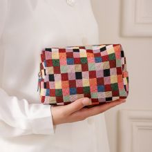 Use our battle tested marketing materials for Large Checkered Travel Makeup Bag – Portable Autumn & Winter Organizer