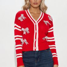 This piece isn’t just another winter sweater—it's a stylish blend of Y2K nostalgia and festive flair. The candy-bow look and diamond accents give it a sweet holiday touch, while its comfortable, non-stretch fine-yarn knit ensures a premium feel. Designed for seasonal fun but wearable year-round, it brings joy, comfort, and style together in one must-have cardigan. Bring home your new favorite holiday essential and enjoy a cute, cozy, confidence-boosting look all season long. Upgrade your winter wardrobe today!SIZE CHART