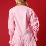 Crafted from lightweight polyester, this dress offers a breezy feel ideal for warm indoor celebrations or mild-weather outings. The straight silhouette, relaxed fit, and above-the-knee length (approx. 32–34 inches depending on size) create an effortless, flattering flow. A turn-down collar and button accents add a touch of classic style, while the tiered design enhances movement and charm. The non-stretch fabric holds its shape beautifully, giving you a polished look all day or night.Why This Dress Is Special