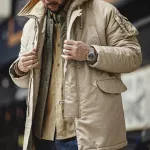 Step into the colder months with confidence in this Retro Pilot Hooded Cotton-Padded Jacket, designed to keep you warm, comfortable, and effortlessly stylish. Crafted for autumn and winter, this mid-length coat delivers a perfect blend of function and fashion. Its thick padding, cozy hood, and soft inner lining work together to protect you from chilly winds, while its classic khaki color adds a timeless touch to your everyday look.Exceptional Comfort and Practical Design