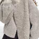 Step into the cold-weather season with confidence and comfort in this elegant minimalist plush short winter coat. Designed for women who appreciate clean lines, soft textures, and timeless style, this cozy outerwear piece blends everyday practicality with a polished, office-ready look. Its thick, plush feel offers reliable warmth during autumn and winter, while its simple round neckline and smooth single-breasted front create a refined silhouette that pairs effortlessly with everything from tailored trousers to weekend denim.Key Features