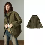 This jacket stands out thanks to its plush polyester fabric that feels soft against your skin while keeping you warm during autumn and winter. The retro pine green color adds a fresh and stylish twist to classic winter outerwear. The loose fit is perfect for layering sweaters or hoodies underneath, giving you both comfort and flexibility wherever you go. With a full-length zipper and button details, it’s easy to wear open for a casual look or fully closed when the cold wind hits. The hood adds extra protection on chilly, breezy days, making it both practical and fashionable.Basic Features