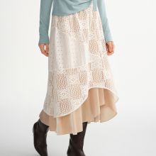 Use our battle tested marketing materials for Plus Size Lace Layered Asymmetric Midi Skirt for Women