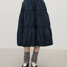 Use our battle tested marketing materials for Washed Blue Patchwork Pleated A-Line Mid-Calf Cotton Skirt
