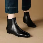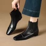 Embrace the colder months with style and comfort in these stunning women’s winter ankle boots. Designed with a genuine leather upper and a cozy fleece lining, these boots provide the perfect combination of warmth, durability, and sophistication. Whether you're strolling through the city or running daily errands, these boots will keep you feeling both fashionable and comfortable all season long. Featuring a square toe and a sleek slip-on design, these boots offer a modern, chic look that effortlessly pairs with any casual outfit. The height-boosting 3cm heel provides just the right lift, adding an elegant touch to your appearance without compromising on comfort. Ideal for daily wear, these boots are as functional as they are fashionable.Product Features