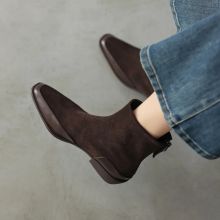 Use our battle tested marketing materials for Winter Women Cow Suede Leather Boots with Square Toe and Chunky Heel