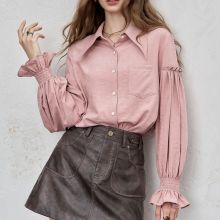 Use our battle tested marketing materials for Preppy Solid Wrinkled Ruffle Full Sleeve Shirt for Women