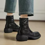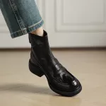 Step into winter with confidence and style in these Genuine Leather Women’s Boots. Designed for ultimate comfort and versatility, these boots are a must-have for your winter wardrobe. Whether you’re braving the cold for your daily commute or enjoying a casual outing, these boots provide the perfect blend of fashion and function. Featuring a modern design with a round toe and a chunky heel, they offer both elegance and stability for any occasion. Crafted with genuine sheepskin leather on the upper, these boots provide durability while maintaining a luxurious look and feel. The cozy fleece lining keeps your feet warm and comfortable, perfect for those chilly winter days. With an easy-to-use zipper closure, you can slip these boots on and off effortlessly. The rubber sole ensures excellent grip, giving you confidence on slick or snowy surfaces.Product Features