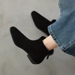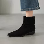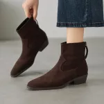 Step into winter with style and comfort in these Suede Leather Winter Boots. Designed to keep you warm and looking fabulous, these boots feature a chunky square heel and a convenient side zipper for easy wear. Whether you're heading to work, running errands, or enjoying a casual day out, these boots are perfect for any occasion. The combination of kid suede leather on the upper and soft fleece lining ensures a snug and warm fit, while the durable TPR sole offers great traction on cold, slippery surfaces. These boots have a modern design that complements a variety of outfits. Pair them with your favorite winter coat, leggings, or a casual dress for a chic and comfortable look. With a 3.5 cm (1.38 inches) square heel, they provide just the right amount of lift without sacrificing stability or comfort. Whether you're in need of everyday shoes or something stylish for the weekend, these boots offer versatility and timeless style that you'll love to wear all season long.Product Features