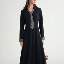 Use our battle tested marketing materials for Women's Winter Plaid Tie-Neck Shift Dress with Asymmetric Panel Design