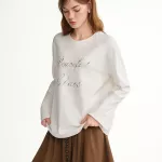 Introducing a must-have addition to your wardrobe for the cooler seasons—this elegant and sparkling embellished letter long sleeve T-shirt. Perfect for adding a touch of charm and sophistication to your everyday look, this top blends casual comfort with an eye-catching design. Whether for a day at the office or a stylish weekend outing, this tee effortlessly elevates your ensemble. Designed for both warmth and style, it’s an essential piece for autumn and winter.Key Features: