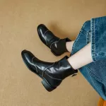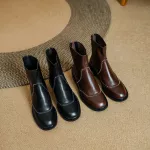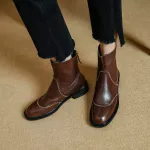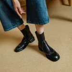 These Chelsea boots offer the perfect balance of style, comfort, and durability. The premium genuine leather upper ensures longevity while giving off a sophisticated vibe. The fleece lining not only provides warmth but also offers a soft touch against your skin, perfect for the colder months. With their sleek and timeless design, these boots can be paired with anything from jeans to dresses. The chunky heel adds a retro flair while providing enough height and stability for long hours of wear. The zip closure ensures a snug fit, making them easy to slip on and off, so you can move through your day with ease.Perfect for Every Occasion