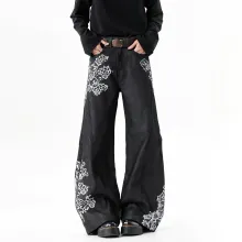 Use our battle tested marketing materials for Men’s Wide Leg Floral Contrast Jeans – Loose Fit Streetwear Denim
