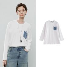 Use our battle tested marketing materials for Asymmetric Spliced Puppy Embroidery Flip Pocket Winter Women’s T-Shirt