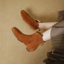 Use our battle tested marketing materials for Winter Women’s Suede Leather Boots with Square Toe & Low Heel