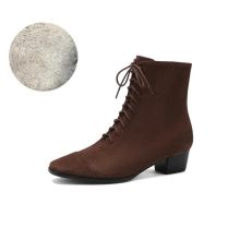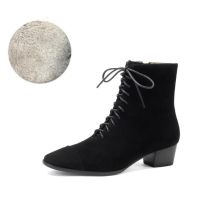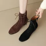 These lace-up and zip-closure boots are built for versatility. The dual closure makes them easy to slip on and adjust, while the solid color and sleek splicing detail give your outfit a polished finish. Whether paired with jeans, skirts, or office wear, they elevate any look effortlessly. Perfect for work, casual outings, or everyday styling, they deliver comfort you can rely on.- Soft kid suede leather for a premium look and feel
