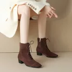 Step into the season with confidence in these Suede Leather Ankle Boots. Designed for women who want both comfort and style, these boots are made from soft kid suede leather that feels luxurious and looks timeless. With a comfortable mid-height 1.6-inch square heel and a classic round toe, they offer the perfect balance between elegance and practicality.Premium Materials for Daily Wear