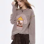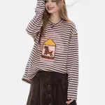 - Preppy stripe pattern with fun cartoon graphics adds a playful touch to your outfit