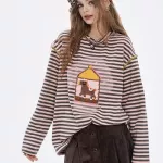 Embrace the cold weather in style with this 2025 Winter Y2K Casual Loose Preppy Stripe Graphic Round Neck T-Shirt. Designed to offer a comfortable yet fashionable fit, this top effortlessly blends casual ease with a chic, trendy vibe. Whether you're headed to the office, meeting friends, or enjoying a weekend outing, this versatile t-shirt is a must-have for every modern woman's wardrobe. Featuring a fun graphic print and an easy-to-wear loose silhouette, this tee will keep you cozy and stylish all season long.Product Features: