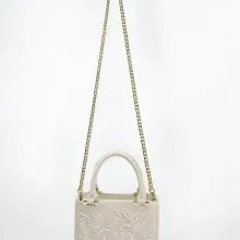 Use our battle tested marketing materials for Pearl Mini Bucket Crossbody Handbag with Chain Strap and Floral Detail