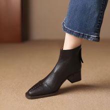 Use our battle tested marketing materials for Women’s Square-Toe Leather Ankle Boots with Chunky Heel