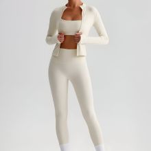 Use our battle tested marketing materials for Solid Color High Waist Yoga Set with Full Zip Jacket – Women's Fitness Suit