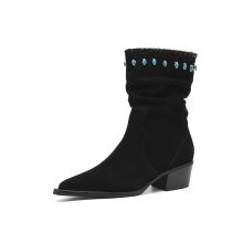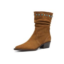 Use our battle tested marketing materials for Women's Retro Cow Suede Winter Mid-Calf High Heel Boots