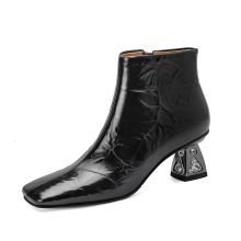 Step into style and comfort this winter with these Genuine Leather High Heels Chelsea Boots. Designed to add a modern twist to your seasonal footwear collection, these boots feature a sleek square toe and a bold, unique strange heel, perfect for making a statement wherever you go. Whether you're dressing up for a night out or simply looking to enhance your everyday outfits, these ankle boots are the ideal choice. Crafted from premium genuine leather, these boots are not only durable but also provide a sophisticated, luxurious look. The sheepskin insole ensures all-day comfort, while the rubber outsole provides reliable grip, making these boots perfect for winter wear. The zipper closure adds both functionality and style, giving you an easy slip-on experience.Product Features