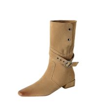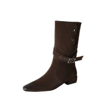 Use our battle tested marketing materials for Warm Retro Cow Suede Women’s Mid-Calf Boots with Square Toe and Thick Heel