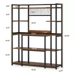 Upgrade your kitchen with this 55-inch large bakers rack, designed to combine style, functionality, and convenience. Its multi-tiered layout and industrial-inspired design provide a perfect solution for organizing your kitchen while adding a modern, sophisticated touch. The middle hutch offers a generous 55-inch countertop, ideal for placing appliances like microwaves, blenders, coffee machines, or even setting up a delightful coffee and pastry station for your afternoon breaks.Ample Storage for Every Kitchen Essential