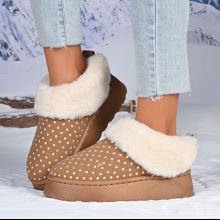 Use our battle tested marketing materials for Rhinestone Plush Winter Slip-On Ankle Boots with Thick Platform Sole