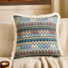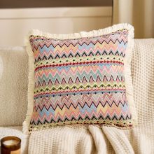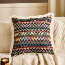 Bohemian Cotton Linen Sofa Pillow Cover, Ethnic Jacquard Cushion Case 18x18 inches