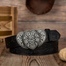 Use our battle tested marketing materials for Three-Dimensional Floral Pattern Carved Heart Large Plate Buckle PU Embossed Belt