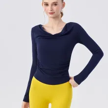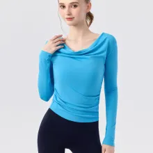 Use our battle tested marketing materials for Women’s Long Sleeve Swing Collar Crop Top Yoga & Gym Shirt