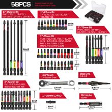 Use our battle tested marketing materials for 58-Piece Compact DIY Tool Set with Impact Bits, Mini Ratchet & Step Drill