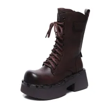 Use our battle tested marketing materials for Genuine Leather Retro Lace-Up Ankle Boots with Square Heel