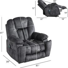 Large Power Lift Recliner Chair with Massage, Heat, and USB - Gray