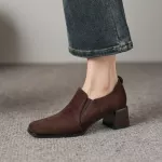 Step into style and comfort with these chic Women’s Spring/Autumn Loafers, designed to elevate your daily footwear collection. Crafted from premium kid suede leather, these slip-on loafers boast a sophisticated square toe and chunky heel, making them perfect for any occasion. Whether you're heading to work, running errands, or enjoying a casual day out, these loafers promise comfort and flair in every step.Key Features