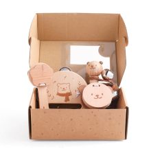 6-piece wooden baby music toy set. Designed with a cute cartoon bear theme, this colorful collection includes a rain drum, castanet, rattle, thumb fiddle, and more—perfect for tiny hands and curious minds. Each instrument produces gentle, soothing sounds that help babies explore rhythm, tone, and movement in a fun and safe way.