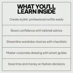 This bundle is designed for professionals who want to boost their wardrobe without the stress of shopping for new outfits every season. Perfect for anyone seeking work fashion ideas, this resource will help you master the art of dressing for success. These digital downloads are easy to access and full of practical, actionable advice. Unlike other fashion guides, this bundle is focused on providing clear, no-nonsense tips and checklists that make building a professional wardrobe a breeze.Key Benefits: