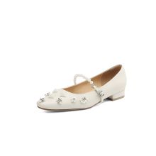Use our battle tested marketing materials for Pearl Mary Jane Pumps – Square Toe Low Heel Leather Shoes