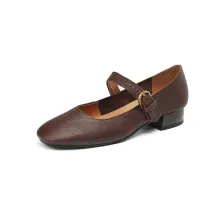 Use our battle tested marketing materials for Classic Leather Mary Jane Pumps with Chunky Heel & Buckle Strap